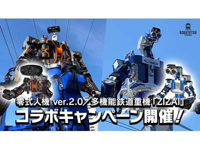 JR西日本グループが企画し、株式会社ジェイコンテンツが開発・運営する新感覚鉄道育成ゲームアプリ『ソダテツ』は、JR 西日本、日本信号株式会社(以下「日本信号」)および株式会社人機一体(以下「人機一体」)が共同研究開発した高所重作業ロボットの試作機である汎用人型重機「零式人機 ver.2.0」および、JR西日本の営業線で鉄道設備メンテナンスに導入されている「多機能鉄道重機『ZIZAI』」とタイアップして、両機をゲーム内に実装します。