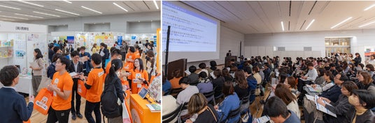 「保育博2024」の展示エリア(左)とセミナーエリア(右)