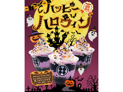 黒ごまとむらさき芋の贅沢な味わいに、ハロウィンのワクワクを詰め込んだわらびもちドリンク「黒ごまむらさき芋 Halloween Sesame Magic」。