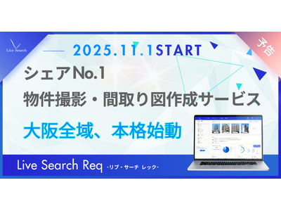 株式会社Live Search(本社:福岡県福岡市中央区、代表取締役:福井 隆太郎、以下「リブ・サーチ」)が提供する不動産業者向け物件撮影代行サービス「Req(レック)」が、2025年11月1日より、現在展開している大阪エリア(大阪市/豊中市/吹田市)から大阪府全域へとエリアを拡大することが決定致しましたので、事前告知としてお知らせします。累計導入社数などの3部門において、2度目のシェアNo.1(※2)を獲得しました。サービス提供開始以降、さまざまな事業規模の企業にご導入いただくとともに、導入企業の99%以上に継続的にご利用いただいています。