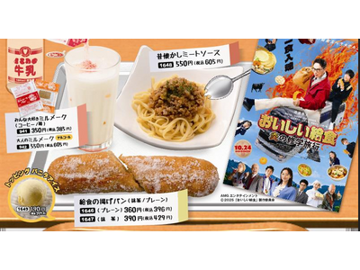 給食の人気定番メニュー揚げパンやミルメークなどを販売します。グループやファミリーで自分たちの時代の給食あるあるで盛り上がること間違いなし!