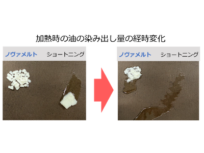 「ノヴァメルト」は、加熱時の油脂の融(と)け出しを制御する独自開発技術(Melting Control技術)により、食品中に油脂の一部を留めさせることで、食品に多汁感や瑞々しさを付与できる食用加工油脂です。