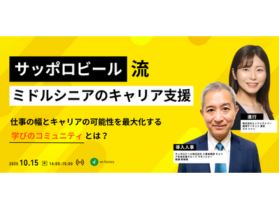 株式会社エンファクトリー(東京都千代田区、代表取締役社長CEO加藤健太)は、2025年10月15日(木)14:00-15:00にて、『サッポロビール流 ミドルシニアのキャリア支援~仕事の幅とキャリアの可能性を最大化する「学びのコミュニティ」とは~』セミナーを開催します。(詳細はこちら:https://ldu.enfactory.co.jp/20251015)