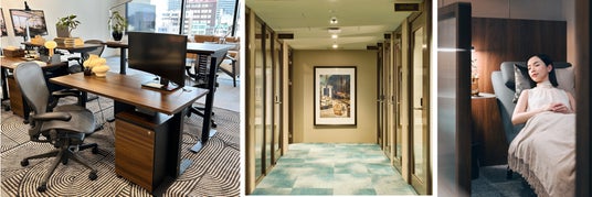 ザ・コレクティブ グラングリーン大阪では、毎日の朝食サービス、平日の夕方からはアペリティアワーとしてワインやビールなどもご提供し、金曜日には専属バーテンダーによるカクテルもお楽しみいただけます。さらに、 オフィススペース内のワークステーションには、人間工学に基づいてデザインされたHerman Millerのアーロンチェアと電動昇降デスクを採用しました。