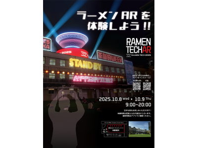 本施策では、SoVeCが開発・提供するVisual Positioning System(以下 VPS)(※1)技術で日常空間にAR(拡張現実)を表示させるロケーションベースARアプリ「XR CHANNEL」(※2)をはじめ、VRゴーグルなどのデバイスが不要で大型ディスプレイに立体映像が浮かび上がる「裸眼3D体験」など、SoVeCが提供する最先端のXRソリューションを活用して、「RAMEN TECH - Global Summit 2025 - 」を盛り上げます。