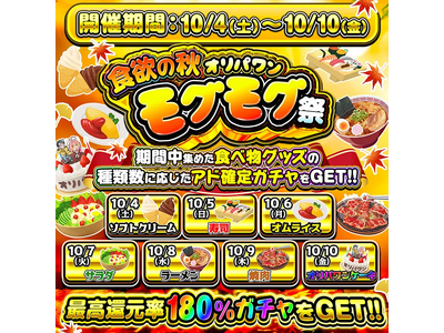 オンラインオリパサイト「オリパワン」は、10/4から7日間限定の「食欲の秋!オリパワンモグモグ祭」を開催します。