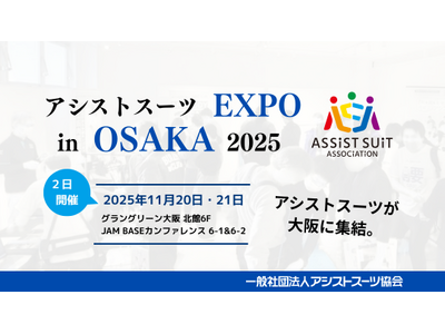 一般社団法人アシストスーツ協会(東京都中央区、代表理事:飯田 成晃)は、2025年11月20日(木)、21日(金)に、大阪では初めての体験展示会「アシストスーツEXPO in OSAKA 2025」を開催いたします。