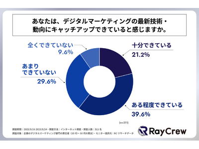 株式会社レイクルー(本社:東京都新宿区、代表取締役社長:藤本 太樹、営業部 部長:佐々木 一磨)は、企業のデジタルマーケティング部門の責任者(20代~50代の男女)を対象に「デジタルマーケティングの最新技術・動向に関する調査」を実施しました。この調査から、AIの進歩により日々進化するデジタルマーケティングの最新技術や動向について企業のデジタルマーケティングの責任者がいかにキャッチアップしているのかの実態やその課題などが明らかになりました。
