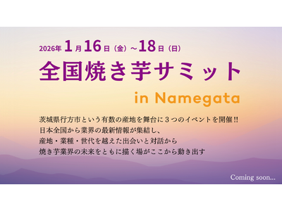 茨城県行方市および全国焼き芋サミットinなめがた実行委員会は、2026年1月16日(金)~18日(日)の3日間、市内において、「全国焼き芋サミットinなめがた」、「焼き芋塾」、「焼き芋まつり」を開催しますのでお知らせします。