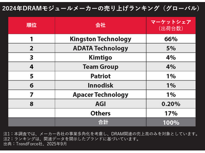 台北 -10月8日, 2025 - メモリストレージ製品および技術ソリューションの世界的リーダーであるKingston Technologyは本日、アナリスト企業であるTrendForce社による最新の