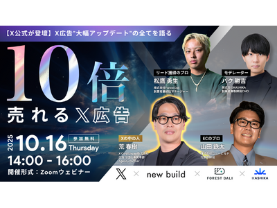 株式会社Forest Dali(本社:東京都渋谷区、代表取締役:矢延 崚)は、当社広告事業部 統括マネジャーであり創業メンバーでもある松鷹 勇生が、X広告をテーマにしたオンラインセミナー「10倍売れるX広告」に登壇することをお知らせいたします。