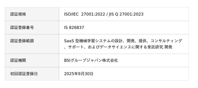 2025年9月30日に認証取得、クラウド運用を含む情報管理体制を強化