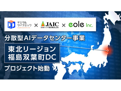 株式会社イオレ(本社:東京都中央区、代表取締役社長:瀧野 諭吾、以下「イオレ))は、デジタルダイナミック株式会社(本社:東京都港区、代表取締役:根来 実、以下「デジタルダイナミック」)と日本アジア投資株式会社(本社:東京都千代田区、代表取締役:丸山 俊)による合弁会社JAICデータダイナミクス株式会社(本社:東京都千代田区、代表取締役:太宰 敏郎、根来 実、以下「JAIC-DD社」)が、2025年7月に経済産業省による自立・帰還支援雇用創出企業立地補助金(地域経済効果立地支援事業(五次))(以下「第5次地域経済効果支援事業」)に、公募申請し、2025年9月26日に支援事業として採択されたことを受け、同社と連携して、分散型AIデータセンター東北拠点として、福島県双葉町で推進される次世代AIデータセンター(以下「東北リージョン福島双葉町DC」)開発事業における事業設計・運用戦略を包括的に支援してまいります。