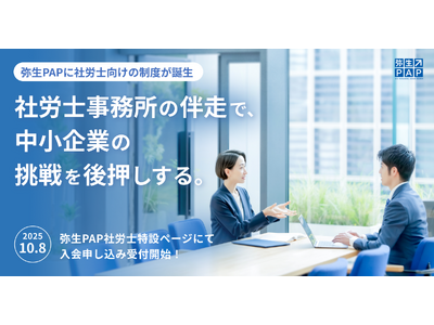 弥生株式会社(本社:東京都千代田区、代表取締役 社長執行役員 兼 CEO:武藤健一郎、以下「弥生」)は、会計事務所向けパートナープログラム「弥生PAP」に、社会保険労務士(以下、社労士)向けの新たな入会区分「弥生PAP社労士」を新設しました。あわせて、初年度年会費が無料となるキャンペーンを実施いたします。
