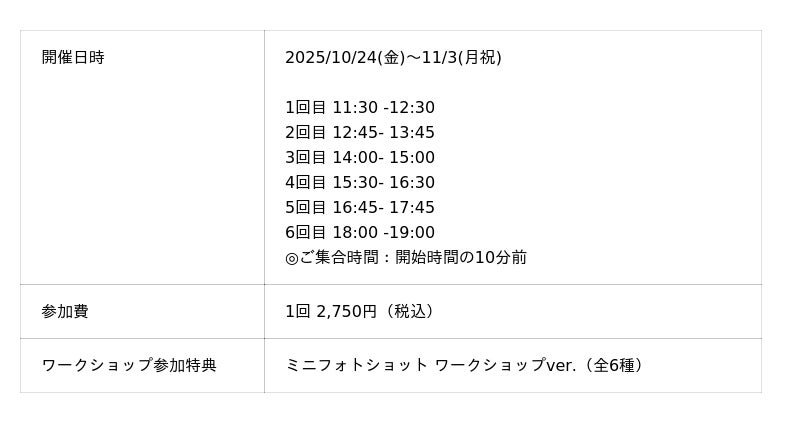 ※ワークショップ参加費は購入特典の付与金額計算からは対象外となります