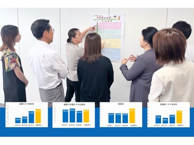 2025年度は血管年齢測定、野菜摂取量測定、骨密度測定、ストレス測定マインドビューアーを実施。多くの従業員が参加し、従業員同士のコミュニケーションを楽しみながら、自身の測定結果を振り返り、食生活改善などの健康マネジメントを実行しています。野菜摂取量測定の「ベジポイント」では、前年度と比較して従業員全体の23.1%が改善した結果が出ました。