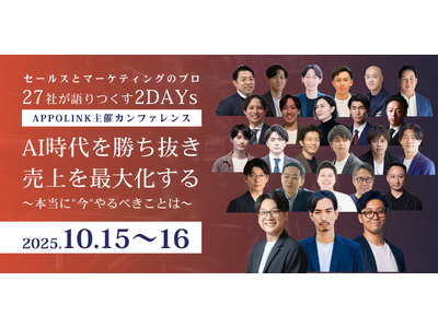 新時代の営業手法を提案する株式会社Emooove(本社:東京都渋谷区、代表取締役CEO:藤澤諒一)は、『APPOLINKカンファレンス - AI時代を勝ち抜き、売上を最大化する』を2025年10月15日(火)・16日(水)にオンラインで共催することをお知らせします。