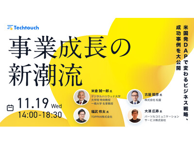 AI型次世代DAP「テックタッチ」を開発・提供し、DAP市場国内シェアNo.1のテックタッチ株式会社は、100名限定のカンファレンス「事業成長の新潮流