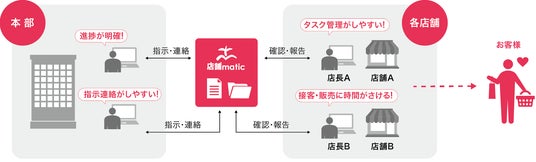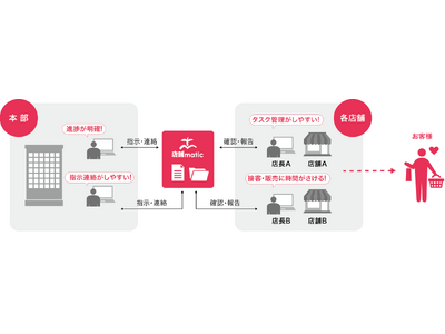 「店舗matic」は、流通・小売業、飲食業をはじめとしたチェーンストアビジネスにおける、本部・店舗間コミュニケーションの共有基盤を提供するクラウドサービスです。