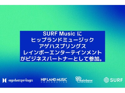 「Bringing Power Back to Music Creators(音楽のチカラをクリエイターに)」を掲げ、世界中の音楽クリエイターやレーベルなどのバイヤーが未発表楽曲を共有し、新たな才能の発掘とクリエイターの収益化を促進するデジタルマーケットプレイスの「SURF Music」に、株式会社ヒップランドミュージックコーポレーション、株式会社agehasprings、株式会社 レインボーエンタテインメントがビジネスパートナーとして新たにSURF Musicに参加したことを発表いたします。