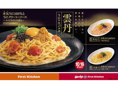 ウェンディーズ・ジャパン株式会社及び、ファーストキッチン株式会社 (所在地:東京都新宿区、代表取締役:紫関修) では、10月16日(木)から、ウェンディーズ・ファーストキッチンとファーストキッチン(※一部店舗を除く)にて、うに本来の豊かな味わいが楽しめる「本気(ガチ)うに100%とうにクリーミーソース~セミドライトマト添え~」など、3つの新商品を発売します。ファーストキッチンは本格的な生パスタを手軽に楽しめるハンバーガーチェーンで、2005年にパスタの販売をスタートしてから20年、女性のお客様を中心に親しまれてきました。今回の新商品は高級パスタの第4弾で、贅沢感のあるうにをたっぷりと使用し、旨味が凝縮されたセミドライトマトなどをトッピングした風味豊かなパスタを、コスパ最強価格(1,290円)でご用意しました。期間限定商品をぜひお楽しみください。