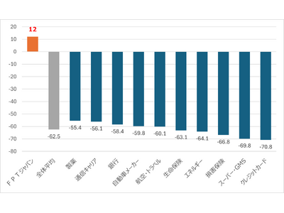 NTTコムの調査結果とFPT独自のeNPS調査結果をもとに加工して作成:従業員推奨度(eNPS)では+12%と、国内10業界平均(-62.5%)を大きく上回るFPTジャパン