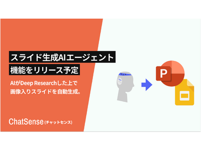 株式会社ナレッジセンスは、セキュリティが高い環境で生成AIを活用できる、法人向けAIサービス「ChatSense」を提供しております。この度、ChatSenseにおいて「スライド生成AIエージェント機能」をリリース予定であることをお知らせいたします。Web情報をディープリサーチした上で、日本語の指示だけで画像入りのスライドを自動生成できるのが特徴です。