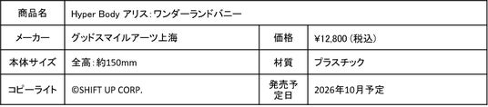 株式会社ホビーサーチ(東京都文京区)は、グッドスマイルアーツ上海の新商品『Hyper Body アリス:ワンダーランドバニー』(2026年10月発売予定)の予約受付を開始しましたことをお知らせいたします。