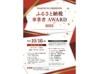 株式会社HAQTSUYA(福井県坂井市丸岡町熊堂3-7-1-16)は、株式会社大津屋の時代から4年連続で続けている、「ふるさと納税事業者AWARD」(以下、本イベント)を、今年も10月16日(木)10時30分~16時30分に、福井駅前のハピテラスにて装いも新たに開催する運びとなりました。