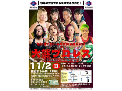 11月2日13時より大熊町交流ゾーンlinkる大熊にてセンダイガールズプロレスIN大熊プロレスが開催します。