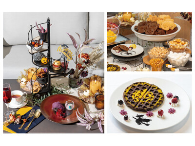 ゆっくりとハロウィーン美食をご堪能いただける「ハロウィーンランチの魔法~アフタヌーンティースタイル~」をご用意しております(事前予約制)。当ホテルのシェフが手掛ける「ハロウィーン モンスターハンバーガー」や「ブラックパスタのペスカトーレ」、「黒ワッフル 紫芋のモンブラン」「お化けクッキー」といったメニューをお召しあがりいただけます。ご友人とのお話しが弾む、ユニークなアフタヌーンティーランチを心ゆくまでお楽しみください。