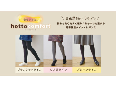 アツギ株式会社(本社:神奈川県海老名市、代表取締役社長:日光信二)は、 2025年秋冬シーズンに「comfort/コンフォート」の厚手タイツ・レギンスカテゴリを「hotto comfort/ホットコンフォート」と称してリニューアルいたしました。ホットコンフォートは保温性にこだわり、生地感別に「ブランケットライン」 「リブ調ライン」 「プレーンライン」の3ライン展開で、寒暖差や脚もとの冷え対策におすすめのタイツとレギンスをご提案します。アツギオンラインショップでは10月10日(金)発売、店頭では10月中旬より順次展開いたします。
