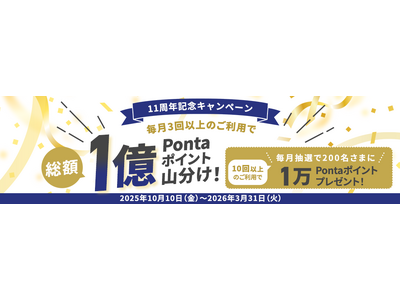 auフィナンシャルサービスは、2025年10月10日から2026年3月31日までの期間、au PAY カード発行開始11周年を記念して、「11周年記念!合計1億ポイント山分けキャンペーン!」(以下 本キャンペーン)を実施します。