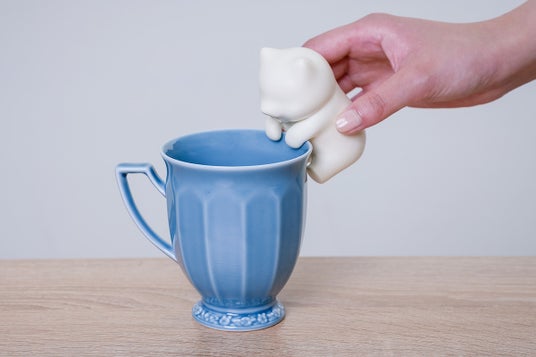 しっぽのボタンを長押しすることで「ふーふー」が始まり、5分間経つと自動的に停止します。マグカップ、スープカップや深めのお皿、お椀など、厚さ2~6mmの食器のフチにひっかけることができるほか、平皿に盛りつけられたお食事にも、座った姿勢で風を送れます。