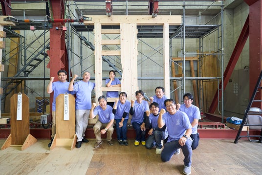 弊社は木造耐力壁ジャパンカップ時代の大会黎明期から出場。今大会の結果を合わせると総合優勝7回、トーナメント優勝9回を達成しています。さらに2023年には大会レコードとなる「71.2kN」を記録。これは「7トン以上の加力に耐える壁」ということになります。カベワンGPに出場し、結果を残すことで木造建築の技術を高めてきた弊社は、戸建て住宅や中大規模木造建築にその知見を展開。純木造8階建て本社ビル(埼玉県さいたま市)や純木造5階建てオフィスビル(神奈川県川崎市)に採用されている「組子格子耐力壁」、「相欠き合わせ柱式ラーメン構造」といった革新的な構造技術は、まさにカベワンGPから誕生したものです。