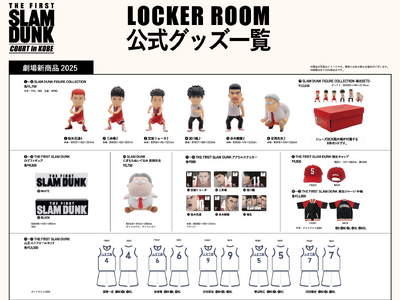 試合前の選手たちのロッカールームをイメージしたエリア「LOCKER ROOM」では、初登場の山王ユニフォームセットや、大人気のFIGURE COLLECTIONの新作など、2025年の新作劇場新商品をはじめとする各種公式グッズの販売を行います。