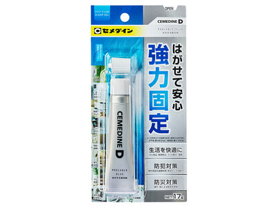 セメダインブースでは、5月に発売した新商品で、強力に固定できるのに、両面からノリ残りなくキレイにはがせる「D はがせる固定剤」をメインに、瞬間接着剤が苦手とする水や衝撃に強い「3000耐水・耐衝撃」などをご覧いただけます。