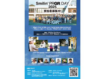 (株)プロギアは、日頃からプロギアをご愛顧いただいているファンの皆さまとの交流を目的とした感謝イベント「Smilin’ PRGR DAY(スマイリン・プロギア・デイ)2025」を、12 月15 日(月)に紫カントリークラブ すみれコース(千葉県野田市)で開催します。当日はダブルぺリア方式による18ホールズストロークプレーのゴルフコンペを行うほか、PRGR契約プロの平塚哲二、谷原秀人、金田直之、森田理香子、辻梨恵、小林夢果、内藤雄士などの豪華ゲストも参加し、ファンの皆さまにプロのショットを間近で体感いただけるドラコンやニアピン対決などを企画しています。このほか、最新クラブの試打会やゴルフのお悩みを解消するレッスン会、トークショーなどを通じてファンの皆さまが笑顔となる一日をご提供したいと考えています。なお、同イベントへの参加申込は、11月10日(月)までPRGR WEB内の「Smilin’ PRGR DAY 2025」申込ページで受け付けています。