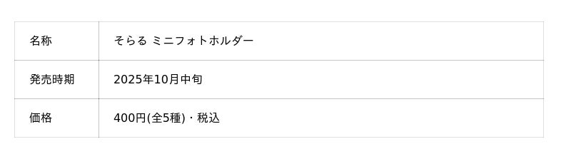 ファッション・アパレル雑貨を中心に企画・製造・販売など、国内外のブランドのOEM事業を手掛けるイエロー株式会社(本社:東京都渋谷区 代表取締役:阪崎英一郎、以下「当社」)は、カプセルトイ「そらる ミニフォトホルダー」の発売を予告いたします。