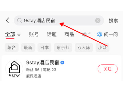 1. 小紅書で「9stayホテル民宿」を検索してください。