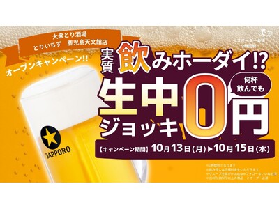 【個室完備 大衆とり酒場 とりいちず 鹿児島天文館店】が、2025年10月13日(月)にグランドオープンいたします。