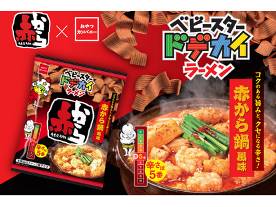 株式会社おやつカンパニー(本社所在地:三重県津市 代表取締役社長:横山正志)は、株式会社甲羅(本社所在地:愛知県豊橋市 代表取締役社長:沼澤裕)が全国で約140店舗展開している外食チェーン店『赤から』とのコラボ商品として『ベビースタードデカイラーメン(赤から監修 赤から鍋味)」を、2025年10月13日(月)より全国にて期間限定発売します。