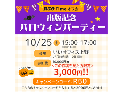 株式会社ソーシャルサービス(本社:東京都千代田区、代表取締役 白形 知津江:以下「当社」)は、大人世代のマッチングアプリ『R50Time』を運営しており、このたび、R50Timeの書籍出版を記念して、“出会いと交流の秋”をテーマにしたリアルイベント【大人のハロウィンパーティー】を開催いたします。