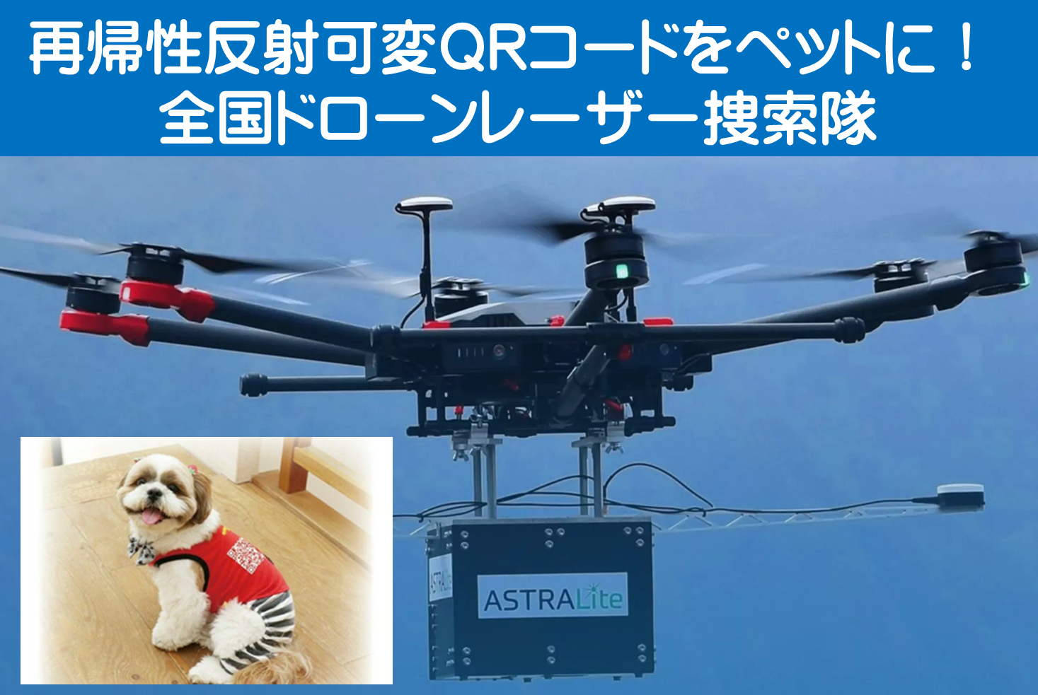 【NPO法人光探索協会】(大阪市、理事長:前田佳伸)は、東日本幹事企業のAPEX株式会社(東京都、代表:下戸優輔)および西日本幹事企業のSMGコンサルタント株式会社(山口市、代表:岡村瞳)と協同して「全国ドローンレーザー捜索隊」を組織しました。「再帰性反射可変QRコード」を可愛いペットの服に装着しておけば、南海トラフ大震災の津波や屋外キャンプなどの迷子時にレーザー捜索が可能になります。万一に備えて「再帰性反射可変QRコード」をペットの服に簡単に装着できるように、「再帰性反射アイロンプリント」のデモンストレーションと発表説明会を令和7年10月20日(月)に当光探索協会の事務所で開催致します。