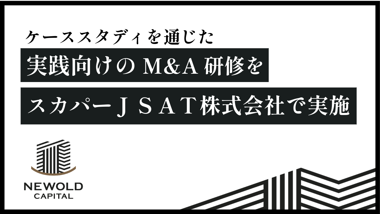 M&A実行支援を主軸として成長戦略の支援をする株式会社NEWOLD CAPITAL(本社:東京都渋谷区、代表取締役CEO:栗原 弘行、以下「NEWOLD」)は、スカパーJSAT株式会社(本社: 東京都港区、代表取締役 執行役員社長代表取締役社長:米倉 英一、以下「スカパーJSAT」)のメディア事業部門にてM&A研修を実施しました。