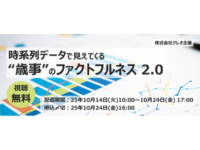 生活者視点をベースにマーケティングとプロモーションを提案する株式会社クレオ(本社:東京都千代田区、代表取締役社長:横井 司)は、2025年10月14日(火)~ 10月24日(金)の11日間にわたり、無料オンラインセミナー「時系列データで見えてくる“歳事”のファクトフルネス2.0」を配信いたします。
