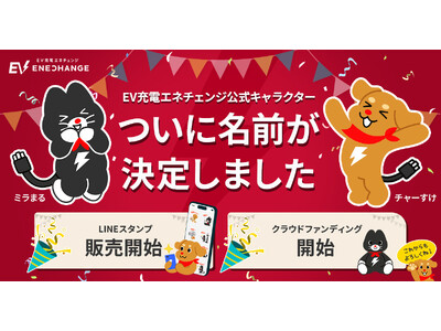 ミライズエネチェンジ株式会社(本社:東京都中央区、代表取締役社長:柘野 善隆、以下「ミライズエネチェンジ」)は、全国から2,127件もの多くの応募をいただき、厳正なる選考の結果、「EV充電エネチェンジ」の公式キャラクターの名前を「チャーすけ」および「ミラまる」に決定したことをお知らせいたします。