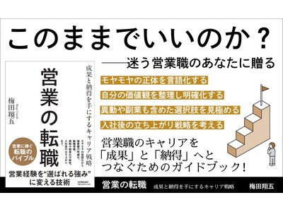 株式会社セレブリックス(本社:東京都江東区、代表取締役:北川 和毅)が運営する営業職に特化した転職エージェント「SQiL Career Agent」の初代事業責任者 梅田 翔五が、「営業の転職 成果と納得を手にするキャリア戦略」を、日本実業出版社より2025年10月14日に発売します。転職を考え始めた初期段階から、選考中の立ち回り、さらには入社後の立ち上がりまで、どのフェーズにいる方でも役立てていただける"営業に捧ぐ転職のバイブル"です。
