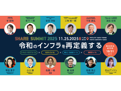 一般社団法人シェアリングエコノミー協会(代表理事:上田祐司、石山アンジュ)は、2025年11月25日(火)に、POTLUCK八重洲(TOKYO MIDTOWN)にて、『SHARE SUMMIT 2025』(