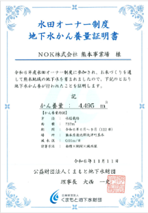 NOK熊本事業場は今後も、行政や地域の環境保全団体、市民の皆様と連携し、地域の資産である地下水の保全に取り組んでまいります。